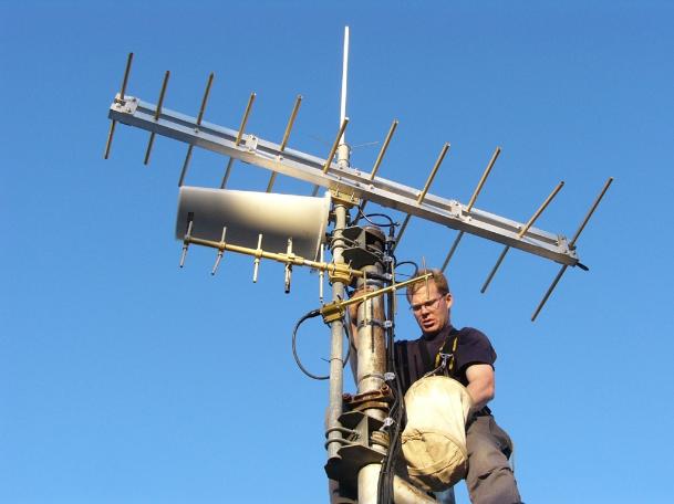 | From the top: X-50 rptr antenna, KTVL Ch10 TV antenna, KTVL Ch35 DTV (radome) 420 North link, Mt. Ashland (5 el), 420 South link, Sugarloaf (3 el) (with Josh K7GVI installing all antennas) |