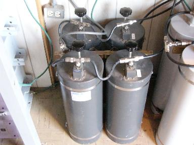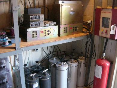 | Gunsight Peak, communications buillding Two "fine" GE repeaters with their duplexers below |