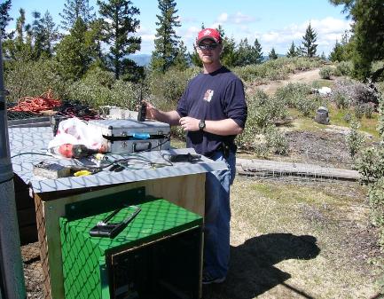 | Chris, K7TVL with finished repeater Mike, KE7LKP finished running AC & antenna lines |