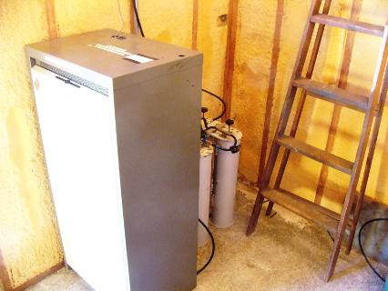 | RVLA repeater cabinet with duplexer behind 2,500 watt power generater backup for the building |