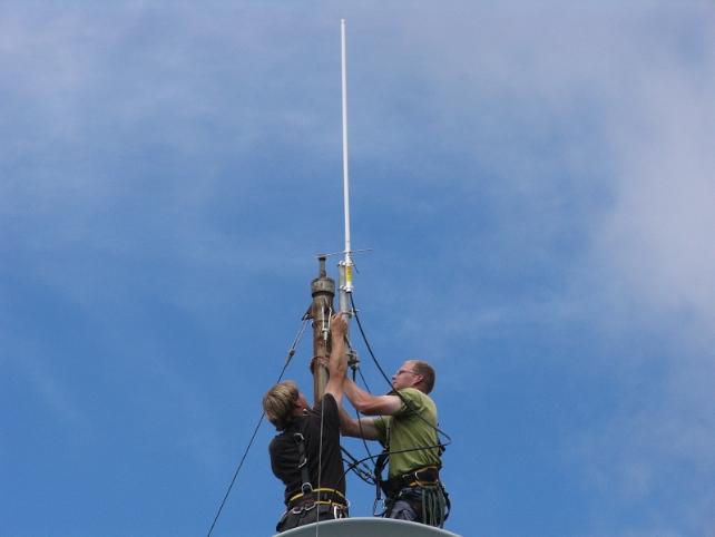 | Pushing the antenna mount to the top of the microwave pole, for max coverage! |