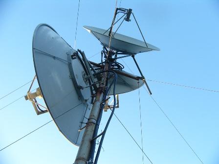 | Three words, LOT'S OF MICROWAVE!!! Jeremy (Left) & Josh (Right) installing our new repeater antenna, on top! |