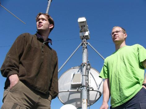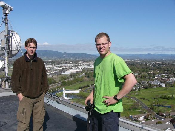 | Jeremy (NS7R) & Josh (K7GVI) doing some posing with KOBI-TV's camera |