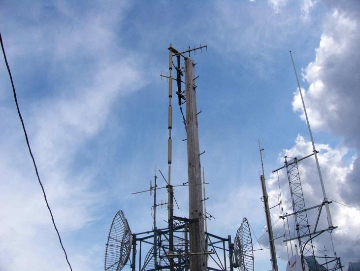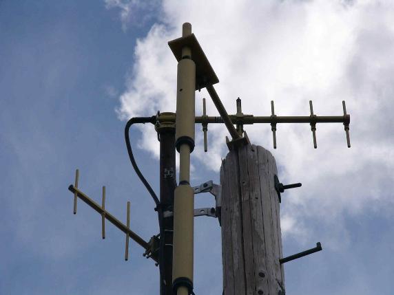 | Close up view of top antenna mounts, North and East link yagis |